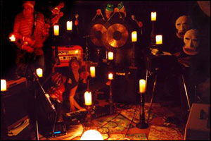 “Removed” means a lot. So does “That stuff,” it turns out. Anonymity in 2007 isn’t incidental; it’s a lifestyle choice. That might even be going too far. A semi-rural town in Finland hosts a yearly mobile-phone throwing contest. In 2001, the number of cell phones in Africa surpassed the number of landlines. Revised: anonymity, or the hope of it, is a myth. Nobody is out of reach. The Black Moth folks wear goofy pseudonyms—Father Hummingbird, Iffernaut, Power Pill Fist, the Seven Fields of Aphelion—and Tobacco uses them without skipping a beat. I ask him who he is when he sings. “None of the BMSR names are characters,” he tells me. Earlier, “Power Pill is my cousin.” Who’s cousin?