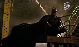 One look at the collection of talent gathered by Warner for Batman Begins explains the film’s success. Christopher Nolan (Memento) was handed the keys to a nine-figure production and a near-perfect cast. Veteran Michael Caine (ummm . . . everything?) thankfully decided to not mail-in his performance as Alfred, and proves yet again that he can stand out in any setting so long as he’s interested. Morgan Freeman (ummm . . . everything else?) plays for the 95th time the older-black-man who helps the younger-white-man, but he turns on the charm more heavily than in recent outings. And Tom Wilkinson (In the Bedroom, The Full Monty) provides a perfect example of how casting terrific actors for small roles (in this case, gangster Carmine Falcone) can add unexpected heights to otherwise mundane scenes. In short, the supporting cast is a serious boon to Batman Begins.
