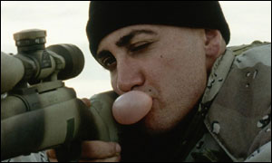 In one scene, Swofford and his company are made to play football in the desert for a highly contrived public relations event, designed so that members of the press can catch a glimpse of the soldiers (in full gear) relaxing for some all-American fun. But what the scene has to say about media manipulation during wartime soon collapses under the weight that Mendes gives to the boys’ camaraderie-forming good times. Part of this is understandably the trap of filmic representation itself: in the book, all of the recruits’ brutish roughhousing is filtered through the retrospective pall of Swofford’s narrative tone. It is due to a collective fear of imminent death (and anxiety over their helplessness to participate in the changes taking place back home) that provokes Swofford and his cronies’ self-destructive, macho behaviour. For Mendes, this concept is an afterthought, and his Jarhead seems unwittingly to hurt Swofford’s message, unsure of what kind of insight it wants to offer about the American presence in Iraq either in 1990 or, least of all, in 2005.