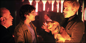 Abel Ferrara opts to treat his familiar territory – Urban Loserville populated by barflies, hoods and dreamers who aren’t quite self-deceiving enough to achieve peace—with bloodless wackiness in Go Go Tales. Set exclusively in and around the foundering strip club of Ray Ruby (a game Willem Dafoe, alternating between showbizzy emcee brio and a gambler’s desperation) on its potentially final night of operation, this sentimental lowlife comedy roves the stage, dressing room and bar, ogling the writhing dancers (led by a Rottweiler-tonguing Asia Argento), suited wiseguys (one with a tall tale about nearly fatal pastrami and Hillary Clinton), and vaguely threatening interlopers (a new wave of Chinese mobsters). The bluish, lovingly composed scenes of these nocturnal Runyonesque heels jabbering and bitching does achieve a funky warmth, even if mannered excess is never too much for Ferrara’s ear. Sylvia Miles enters an early scene screeching as the joint’s landlady, ready to close it down and sell to Bed Bath & Beyond; I shuddered when she plopped down and remained at the bar for the entire film. The absurd plot has Dafoe trying to hit paydirt by buying thousands of lottery tickets; just as dopey but infinitely stranger are bits like Matthew Modine as Ray’s frosted-blond beautician brother and backer, singing to his pooch in a staff talent show. Though overlong and repetitive, Go Go Tales at least pulls a shrugging reversal after an easily anticipated fairytale climax; arguably, its indie pasties are in the right place.